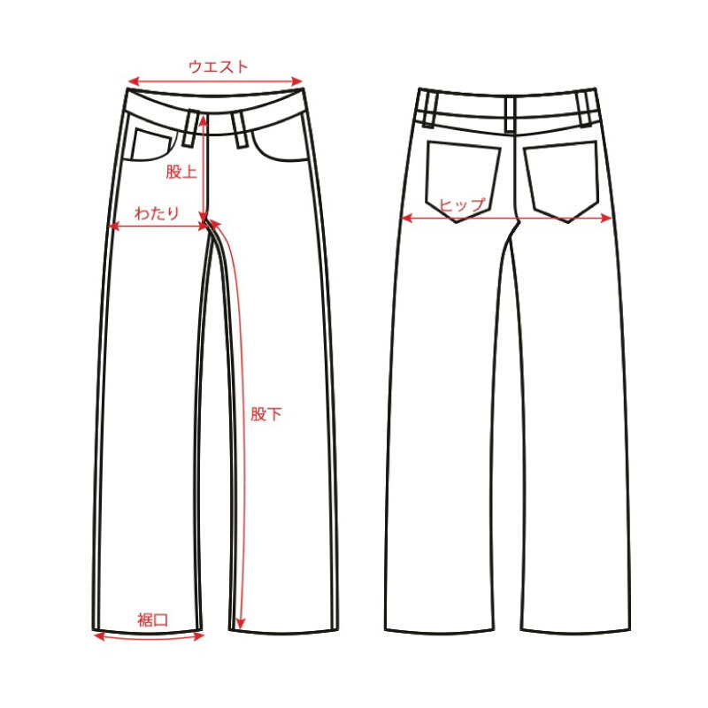 32インチ:ウエスト85cm、ヒップ112cm、股上29cm、股下77cm、裾口20.5cm